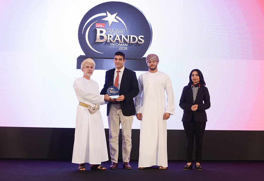 Muscat Daily awards Oman Refco ‘The Most Trusted Brand IN 2018’ for Mountain Dew, in the soft drinks category, and for Topfruit, in the fruit juice category. Accepting the awards were Oman Refco’s chief sales and marketing officer, marketing manager, and legal affairs manager.
